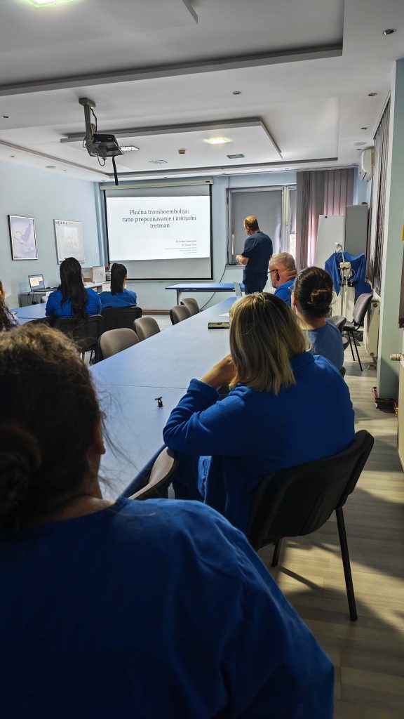 Ova edukacija deo je kontinuirane obuke zaposlenih u našoj bolnici, sa ciljem povećanja stručnosti, unapređenja kvaliteta rada i profesionalnog razvoja medicinskog osoblja. Kroz predavanje, naši lekari i medicinske sestre imali su priliku da prodube znanja o ranoj dijagnostici i inicijalnom tretmanu plućne tromboembolije, što direktno doprinosi sigurnosti i boljoj nezi naših pacijenata.
